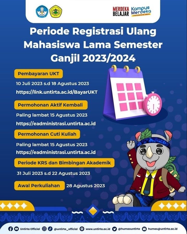 Periode Registrasi Ulang Mahasiswa Lama Semester Ganjil UKT UNTIRTA TA. 2023/2024
