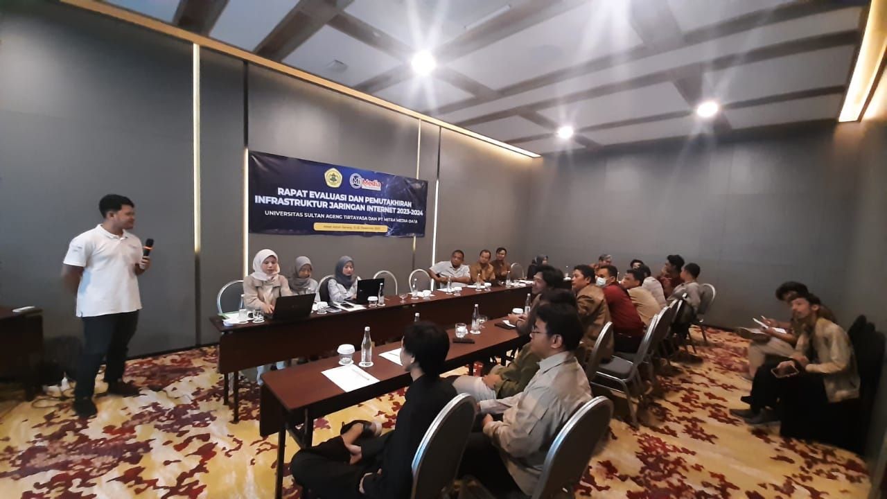 Unit Penunjang Akademik Teknologi Informasi dan Komunikasi (UPA TIK) yang dulu dikenal sbg UPT. Pusdainfo mengadakan Rapat Evaluasi dan Pemutakhiran Informasi Teknologi pada tanggal 21 – 22 Desember 2022 di Hotel Aston Serang. Kegiatan ini diselenggarakan dalam rangka memperkuat infrastruktur jaringan internet diseluruh lokasi kampus Universitas Sultan Ageng Tirtayasa pada tahun 2024 nanti. Selain dari seluruh jajaran dan staf UPA TIK, hadir juga dari pihak penyedia jasa Internet atau provider PT. Mitra Media Data yang mana merupakan mitra kerja Untirta dalam jasa provider yang melayani pengadaan dan membantu stabilitas jaringan internet di Untirta.
