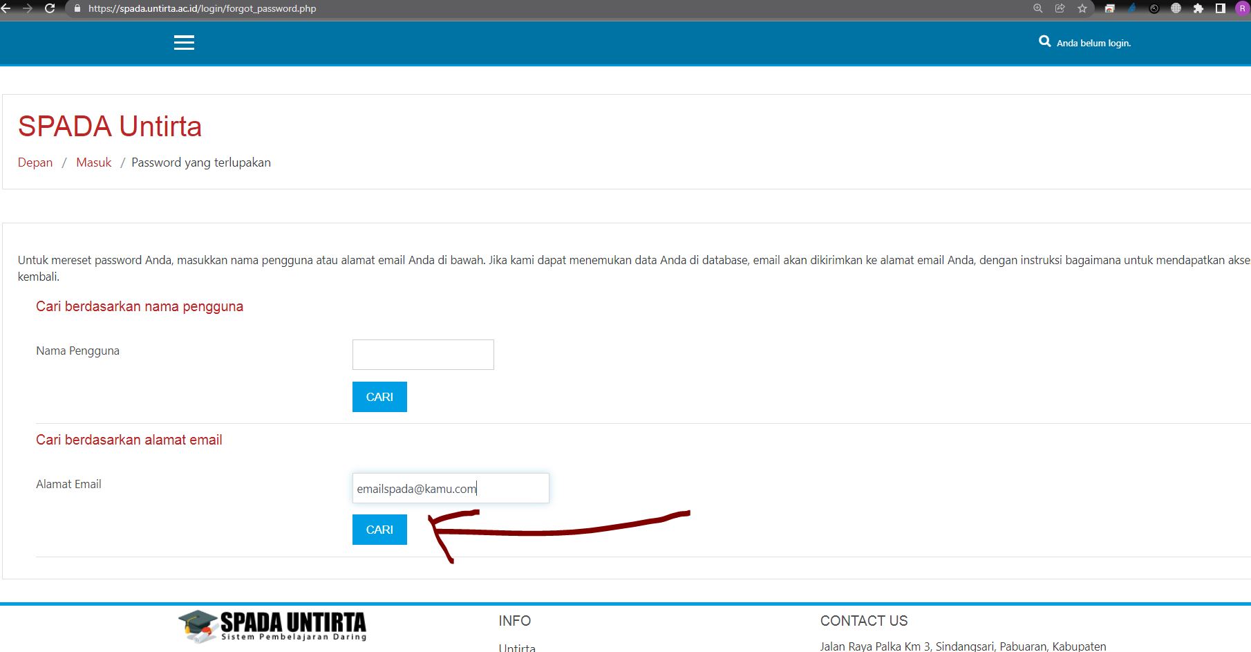 Setelah itu, kamu akan diminta untuk memasukkan alamat email yang terdaftar di Spada. Pastikan kamu memasukkan alamat email yang benar.