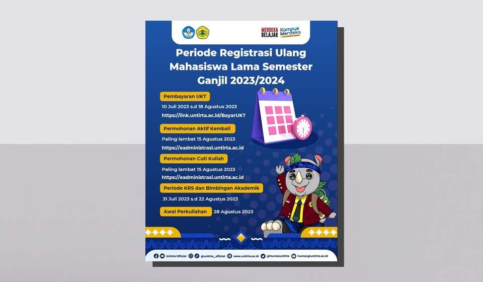 Periode Registrasi Ulang Mahasiswa Lama Semester Ganjil UKT UNTIRTA TA. 2023/2024