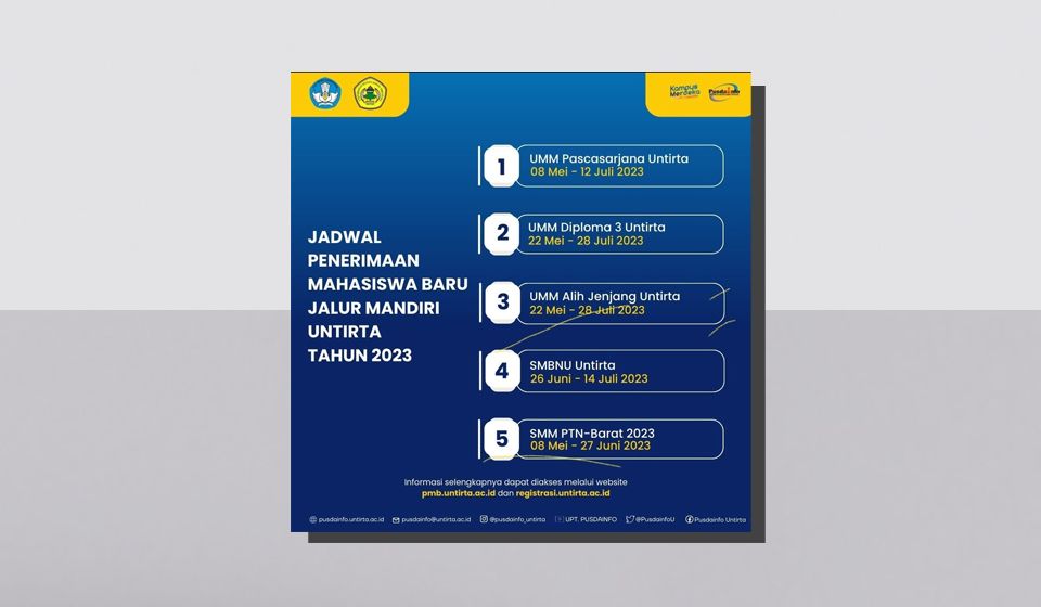 Jadwal Jalur Masuk Mandiri Penerimaan Mahasiswa Baru Untirta Tahun 2023